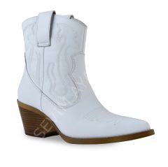 KADIN GÜNLÜK BEYAZ RENK HAKİKİ DERİ WESTERN BOT